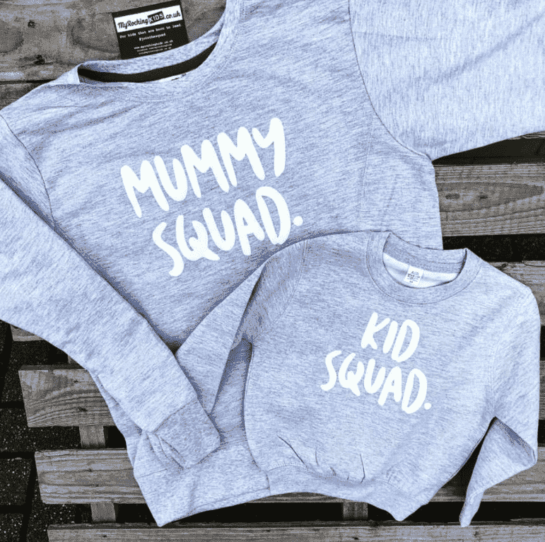 Mummy and Kid SQUAD Matching Light Grey Sweaters (MRK X)