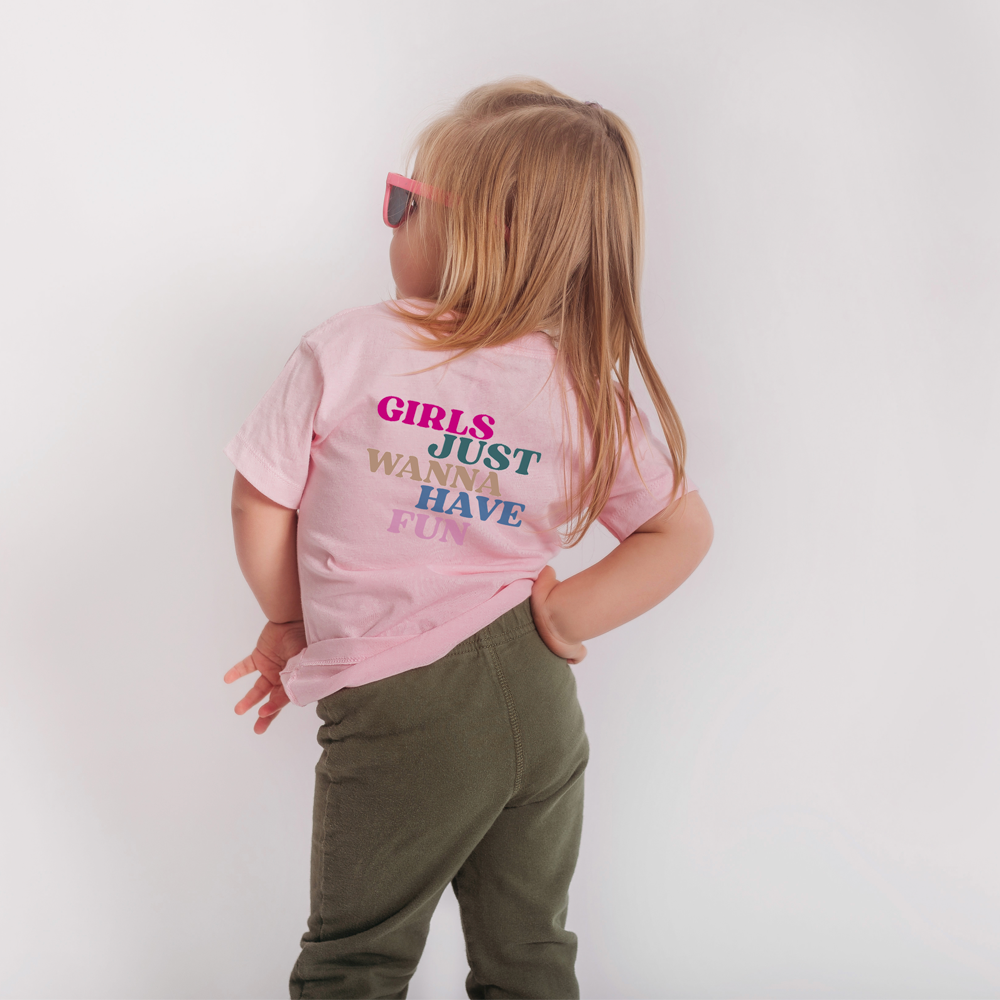 Girls Just Wanna Have Fun Kids Pink Tee