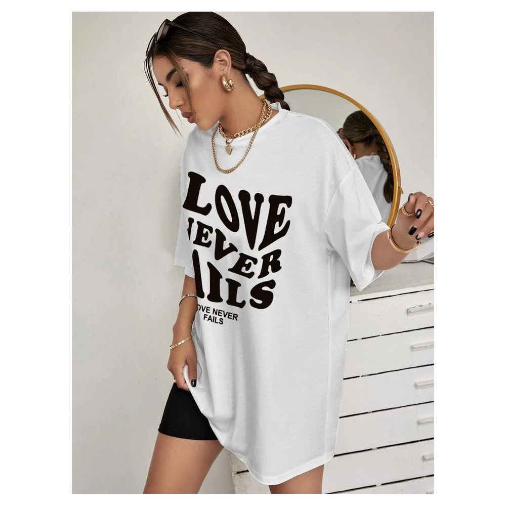 Ladies Love Never Fails Slogan Oversized t shirt Top