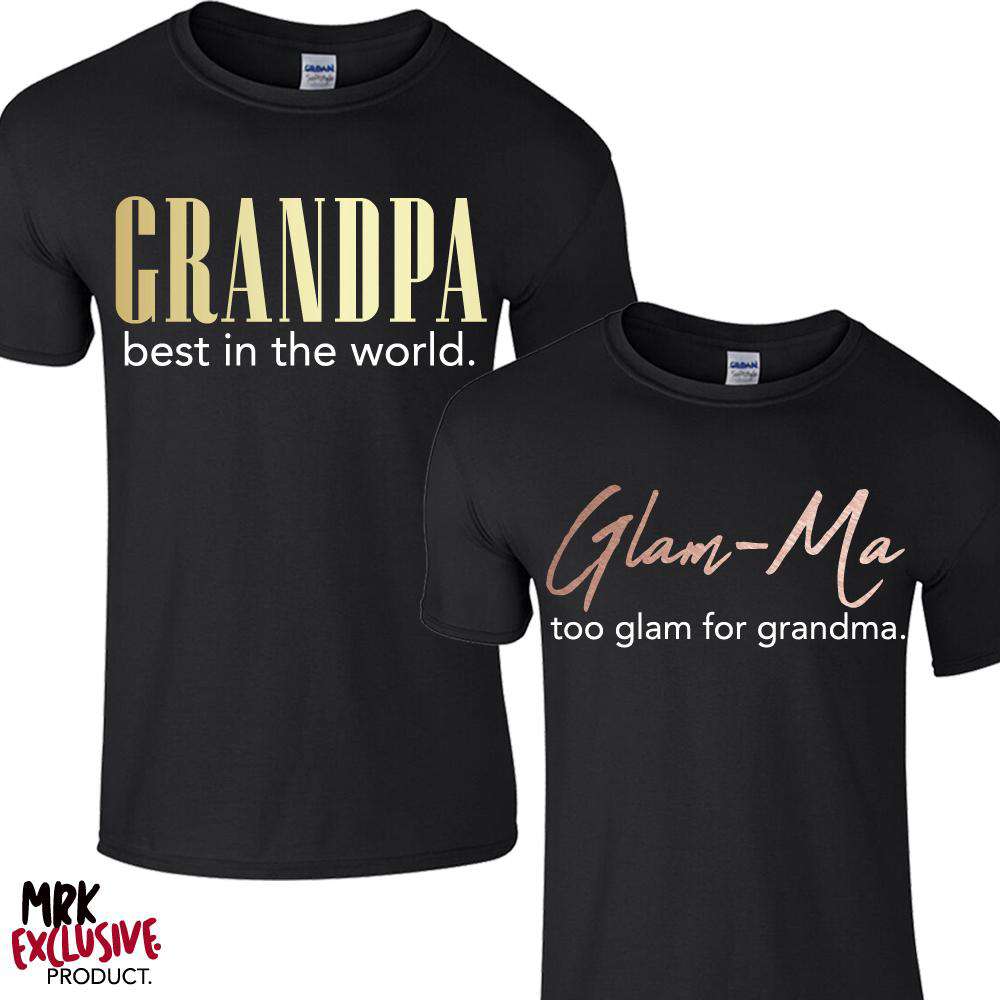 Glam-Ma & Best Grandpa Matching Black Tees (MRK X)
