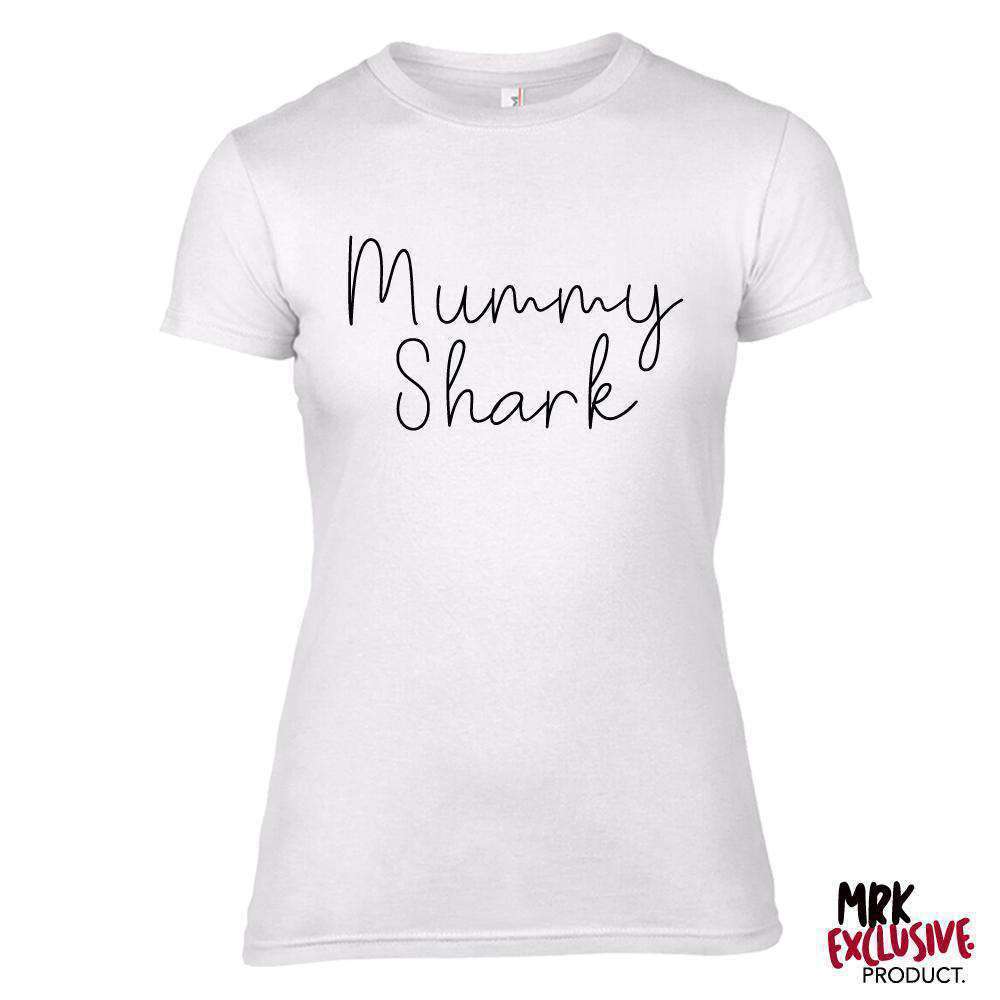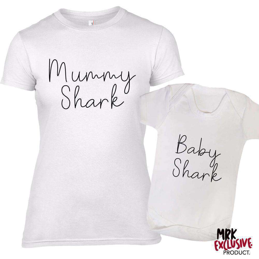 Mummy Shark Matching New Script Slogan White Tee & Bodysuit (MRK X)