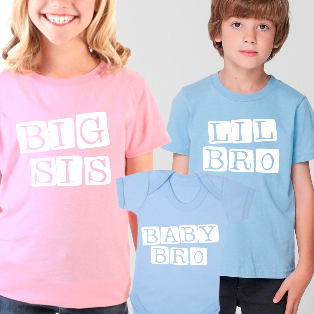 Big Sis/Lil' Bro/Baby Bro Stamp Matching Pink Tee & Sky Blue Tee (MRK X)
