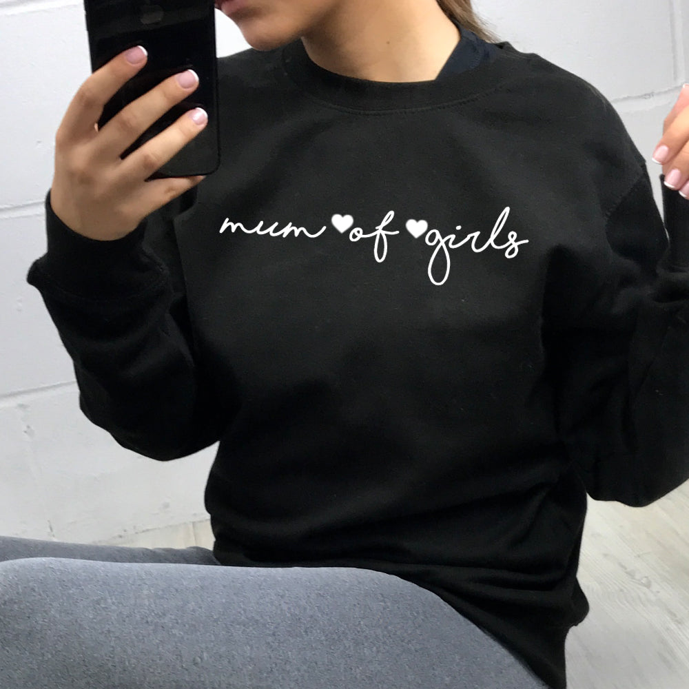 Mum of Girls Script Heart Sweatshirts (MRK X)