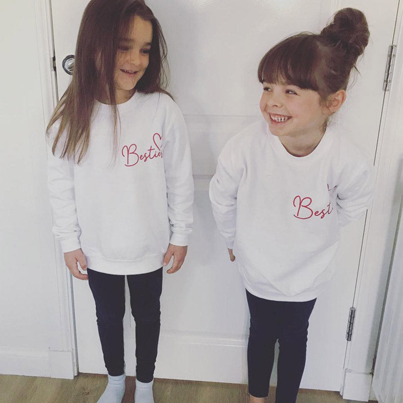 Besties Mini Logo Kid Matching Sweatshirts- White