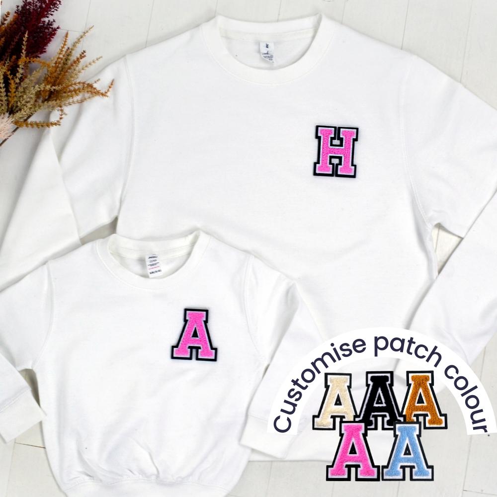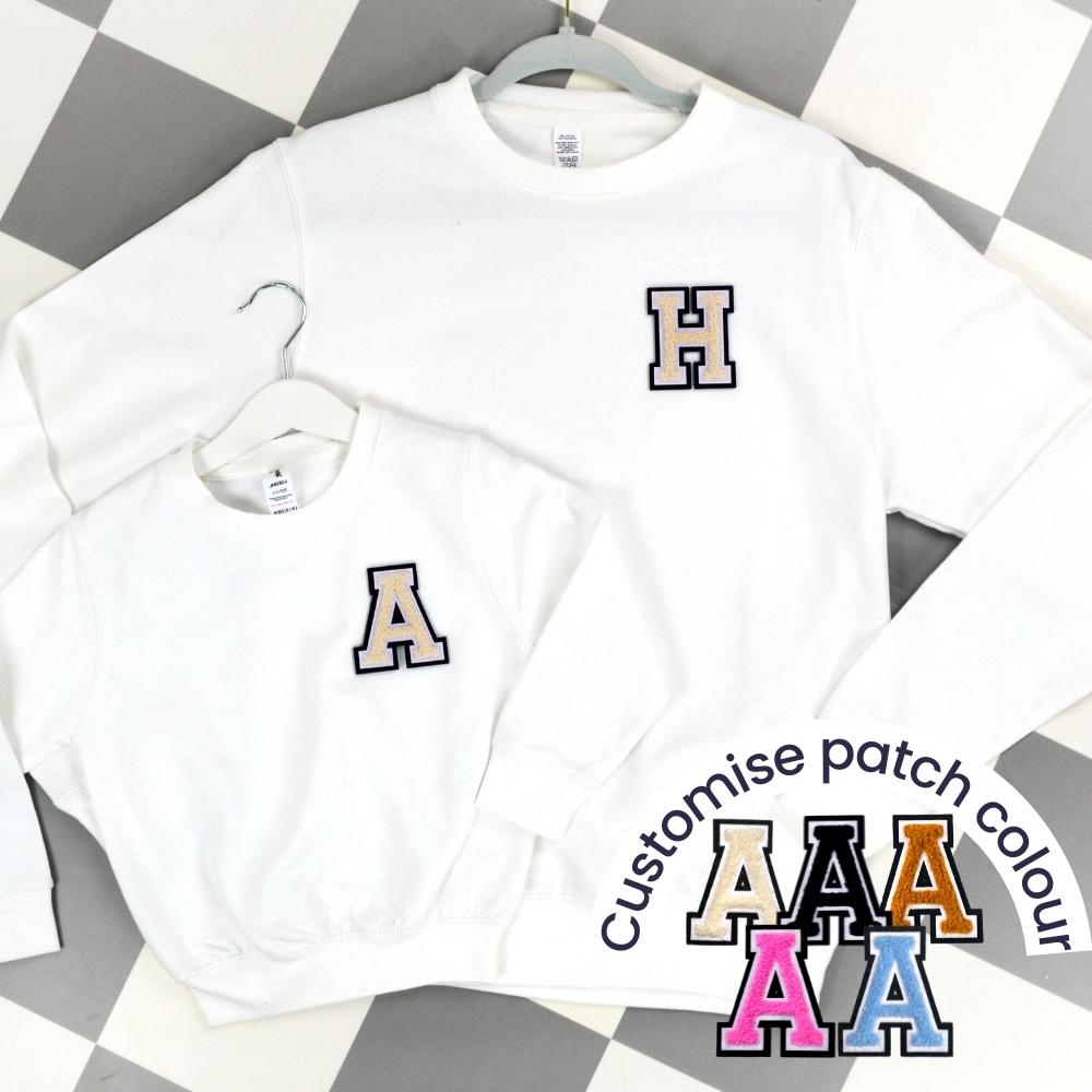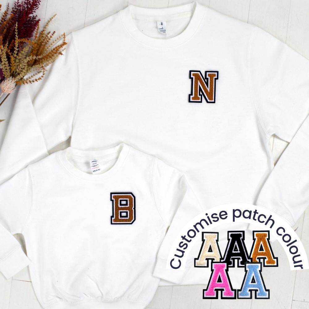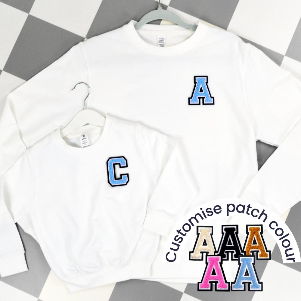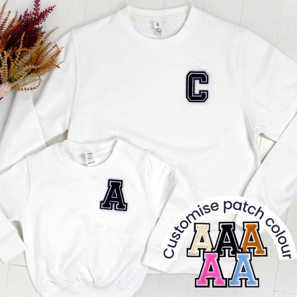 Patch 22 White Matching Initial Sweatshirts
