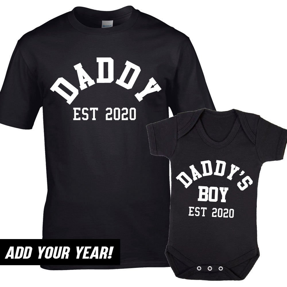 Daddy & Daddy's Boy Varsity Established Matching Black T-Shirt & Bodysuit (MRK X)